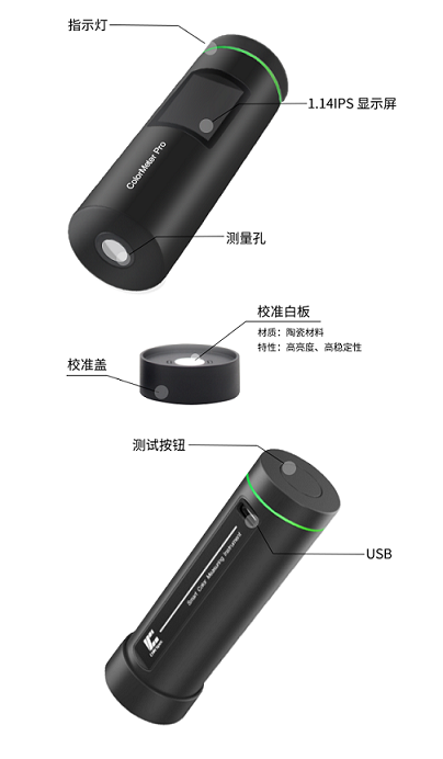 儀器開機時同時自動校準,拿起儀器即可進行顏色檢測工作,數據無誤