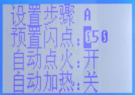 1、設(shè)置步驟應(yīng)設(shè)置為A狀態(tài),自動(dòng)點(diǎn)火為開(kāi)狀態(tài),自動(dòng)加熱為開(kāi)狀態(tài)。