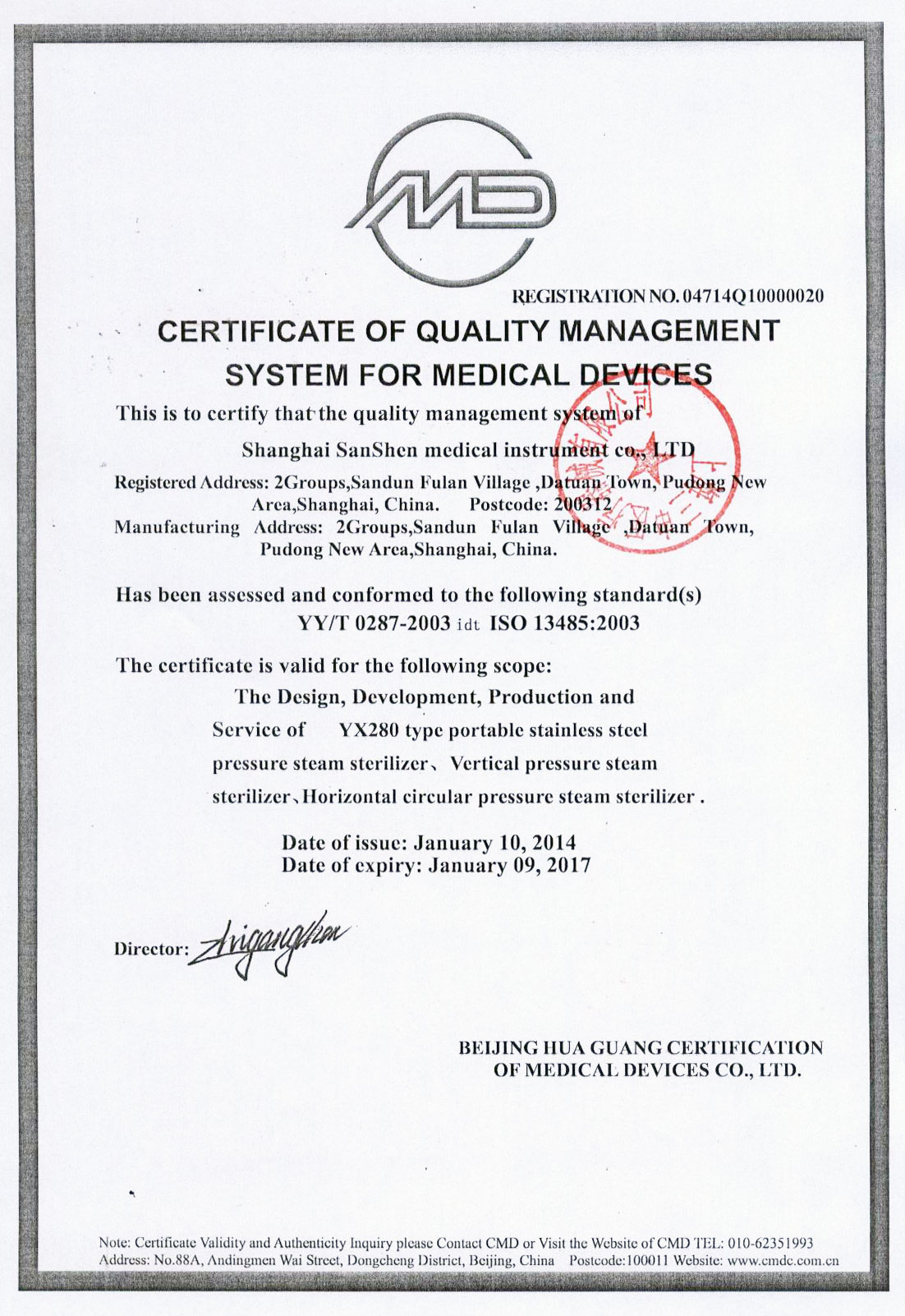 • 有醫療器械產品注冊證和特種設備制造許可證(壓力容器)