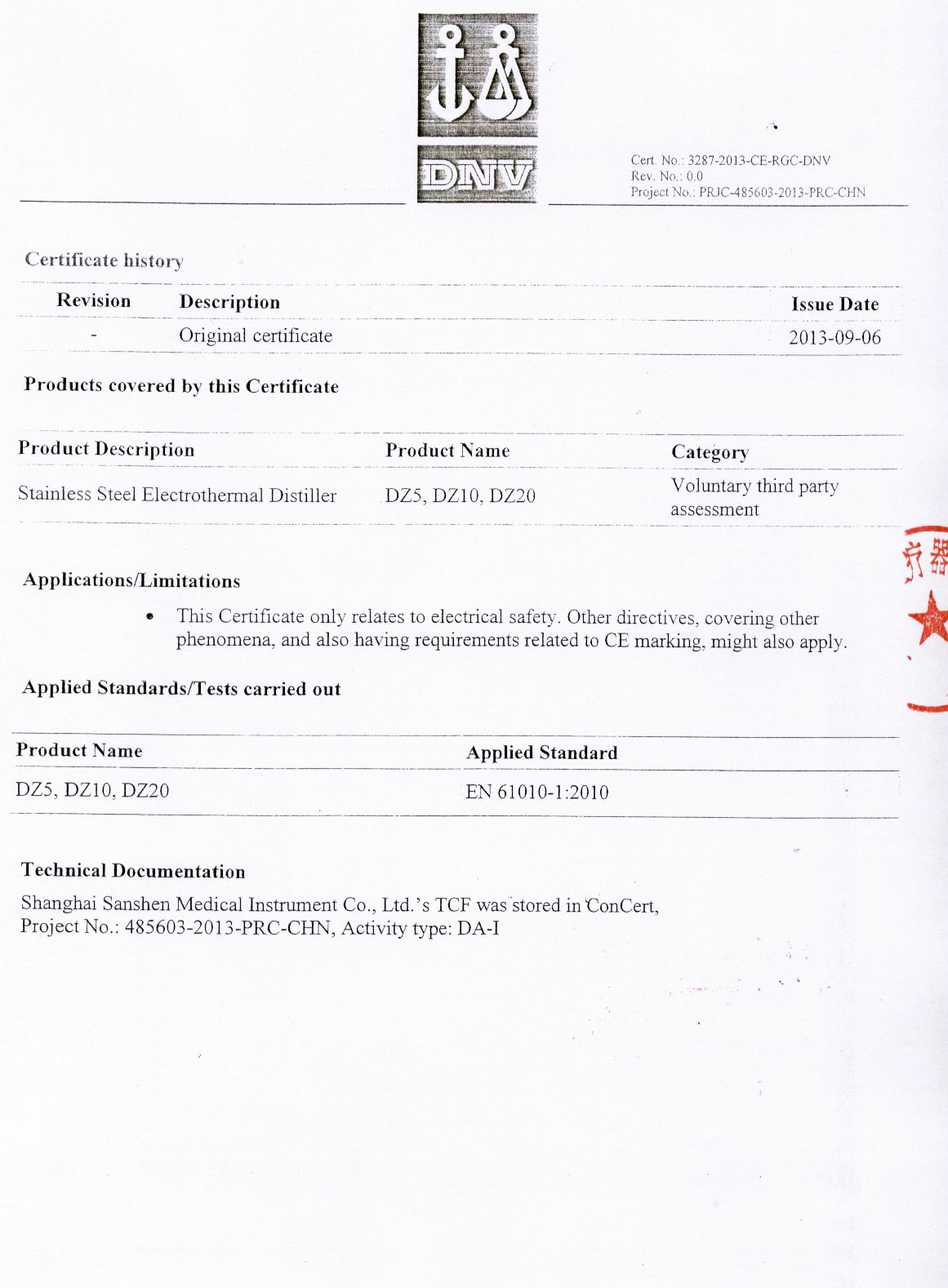 上海三申蒸餾水器(斷水自控型)DZ5Z/DZ10Z/DZ20Z