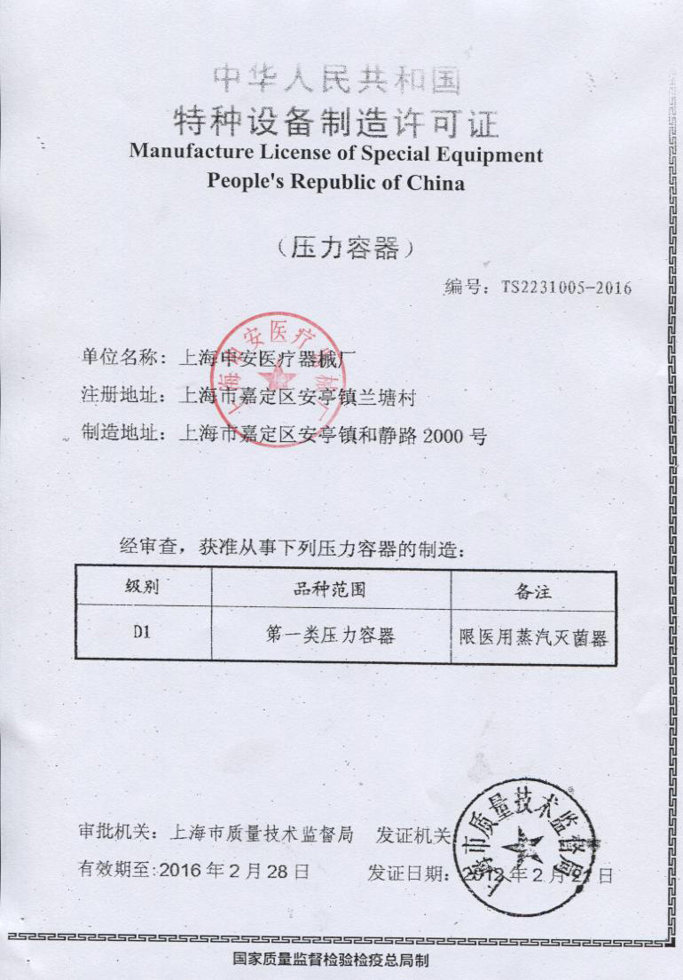 本品屬于壓力容器受控產(chǎn)品,符合國家對壓力容器設(shè)計(jì)與制作的相關(guān)規(guī)定,并取得了食藥監(jiān)產(chǎn)品注冊證和消毒產(chǎn)品衛(wèi)生許可證,是我廠研制開發(fā)的新一代智能型立式壓力蒸汽滅菌器,其結(jié)構(gòu)先進(jìn)可靠,具有快捷簡便的操作方式和功能齊全的控制系統(tǒng),在安全控制上;具有超壓自泄、斷水保護(hù)、超溫自控的數(shù)套安全聯(lián)鎖的裝置。本品操作系統(tǒng)采用先進(jìn)的微機(jī)自動處理技術(shù),滅菌運(yùn)行過程實(shí)行微機(jī)自動控制,操控臺上的液晶顯示窗顯示整個(gè)滅菌動態(tài)和功能運(yùn)行情況,產(chǎn)品主要部件采用優(yōu)質(zhì)不銹鋼材料精制而成,滅菌指標(biāo)達(dá)到國家醫(yī)用手術(shù)級標(biāo)準(zhǔn),是各醫(yī)療衛(wèi)生、大專院校、食品化工、生物科研等單位對器械、敷料、藥液、食品器皿、培養(yǎng)基等物品進(jìn)行消毒滅菌的理想產(chǎn)品。