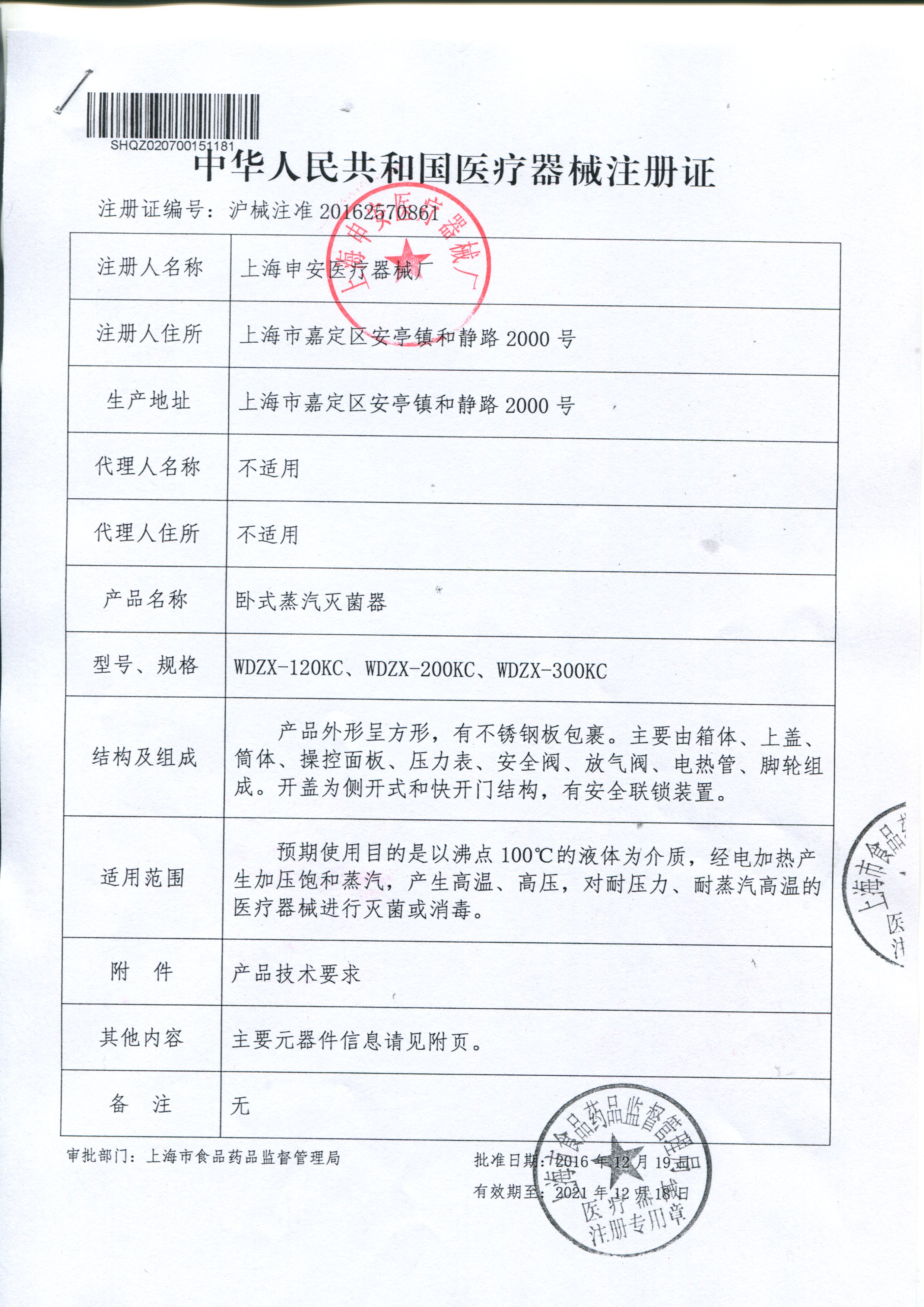 上海申安臥式壓力蒸汽滅菌器滅菌柜高壓滅菌鍋WDZX-120KC/200/300KC
